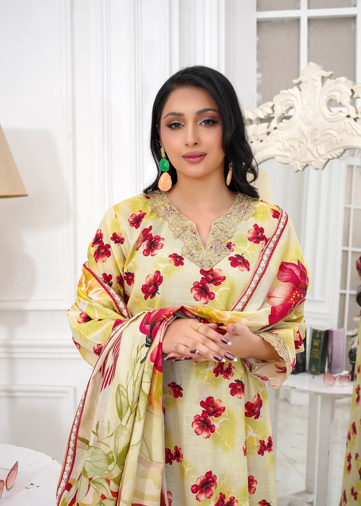 Add vibrant charm to your wardrobe with this Lime Yellow Embroidered Lawn Suit, perfect for casual and semi-formal occasions. The premium lawn slub shirt features delicate embroidery for a refined and elegant look. Paired with a soft Premium Lawn Voil dupatta for effortless draping and style. Completed with matching Premium Lawn Slub trouser for a coordinated, chic outfit.
